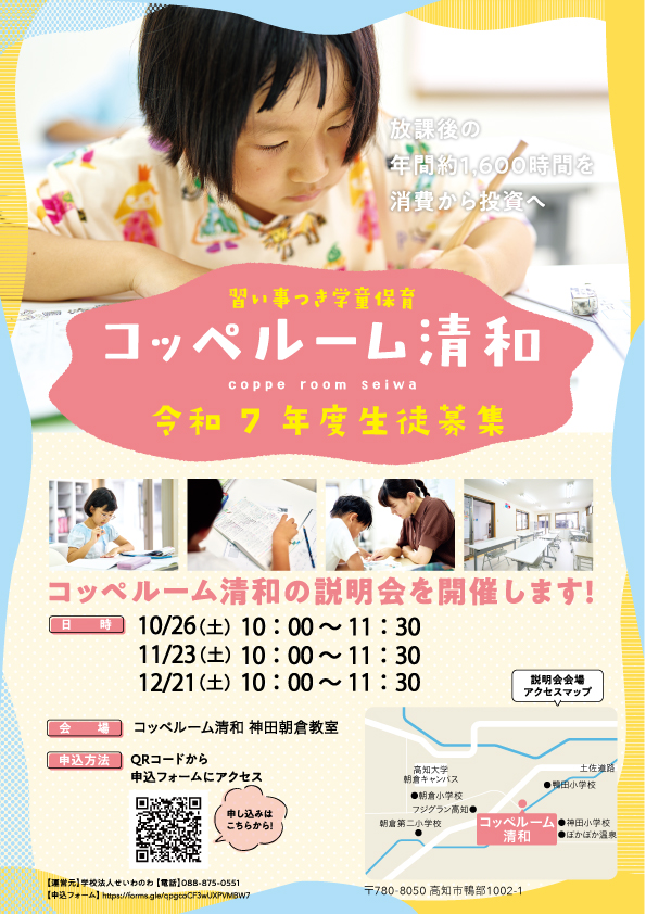 令和7年度の生徒募集につきまして、コッペルーム清和の説明会を開催します。